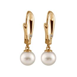10K Yellow Gold Freshwater Pearl Diamond Earrings 5-6mm