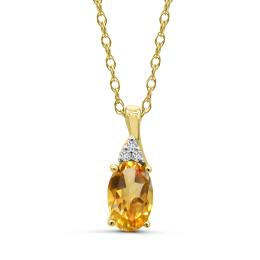 10K Yellow Gold Blue Topaz & 0.07CTW Diamond Pendant with 17" Chain