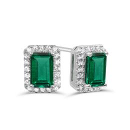 Sterling Silver Created Emerald & Created White Sapphire Earrings