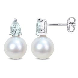 Julianna B 10K White Gold Aquamarine & 8-8.5MM Pearl Earrings
