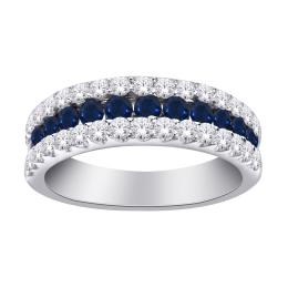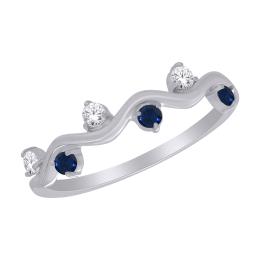 10K White Gold Created Blue Sapphire and Lab Grown Diamond Band