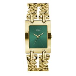 Guess Women's Gold Tone Green Strap Crystal Array Watch
