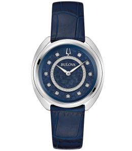 Guess Women's Gold Tone Blue Strap Crystal Array Watch