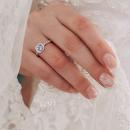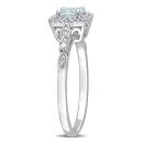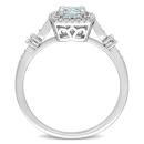 Add some flair to your outfit with this Aquamarine and Diamond Halo Engagement Ring. Crafted in lustrous sterling silver, it features a round-cut, prong-set aquamarine gemstone (5 x 5mm) at the center with a halo of 24 round-cut, buttercup-set diamonds and four round-cut, pave-set diamonds (G-H, I2-I3) rested on its band. Polished to a brilliant shine, this ring is the wonderful addition to any jewelry collection. Coordinate this ring with any ensemble for a stunning look.