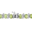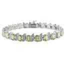 This splendid bracelet features oval-cut peridot stones accented with round white diamonds set in sterling silver. This enchanting piece is secured with a box clasp.