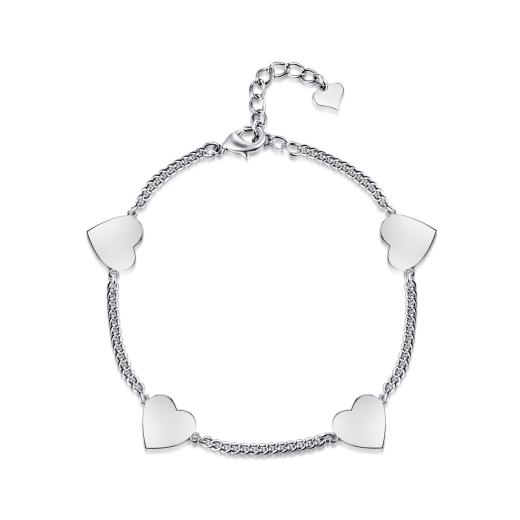 Stand out from the crowd with this delicate heart bracelet. High polished gleaming heart discs adorn this chain bracelet that can be adjusted for the perfect fit. This piece is sure to become a favourite in your jewellery collection.