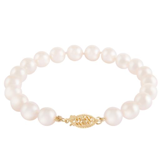Stand out from the crowd with this gorgeous Akoya pearl bracelet with 14k yellow gold clasp, featuring lustrous 7-8MM white Akoya pearls. This classic bracelet is sure to become a favourite in your jewellery collection.