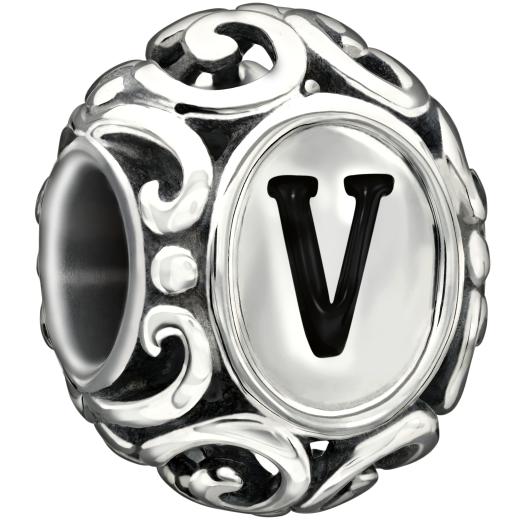 Initially Speaking V is beautifully inspired with an elegant filigree design in sterling silver with black enamel letter detail. Be creative and choose the alphabet bead that represents your name, your children's initials, your anniversary month or combine several letters and spell something meaningful to you.