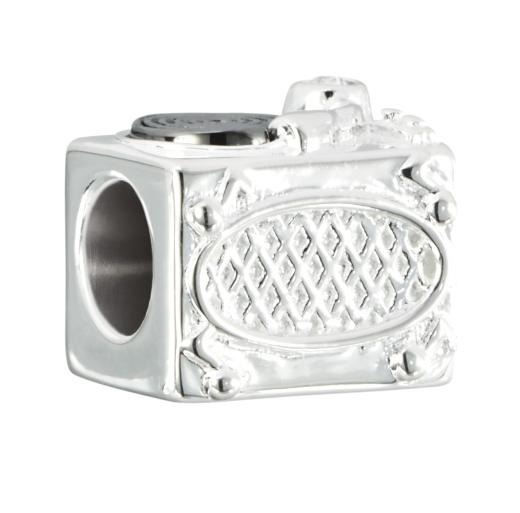 Created with vintage appeal, this musical You Spin Me record player shows style and sophistication. A black rhodium plated record sits atop this .925 sterling silver turntable with Swarovski crystal detailing the top of the needle. Swarovski crystals and the phrase "You Spin Me" decorate the bottom of the bead in jet enamel. Charm measures 1/3 x 1/2 x 1/3 in | 0.85 x 1.27 x 0.85 cm