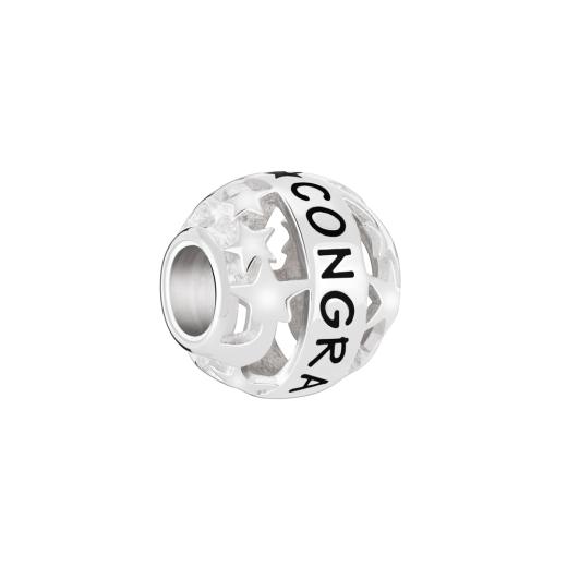 Make the celebration even better with the Starry Congratulations charm. The design features a sculpted star pattern framings a banner reading "Congratulations." Made with sterling silver and black enamel. This is a memory to keep forever.