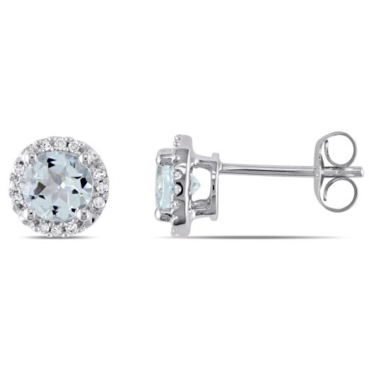 These lovely round-style earrings showcase the soft blue hue of aquamarines sparkling amid icy diamonds. Crafted of lustrous 10k white gold, these stud earrings shimmer with a high polish finish.