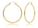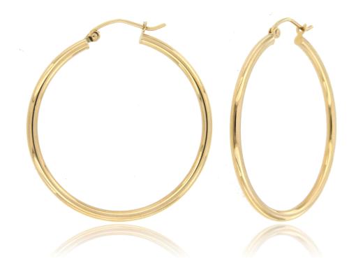 These earrings showcase a sleek and modern hoop design, enhanced with a polished finish for a touch of sophistication. The delicate 2x30mm size adds a subtle yet eye-catching element, making them a versatile accessory suitable for various occasions. Embrace the timeless allure of yellow gold with these finely polished hoop earrings, a perfect blend of contemporary style and classic elegance that effortlessly enhances your everyday look.