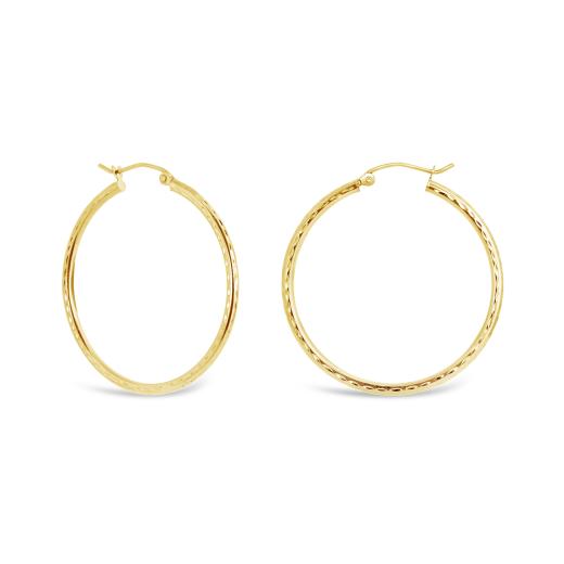 Introducing the 10K Yellow Gold 2x30mm Diamond Cut Hoop Earrings, a chic and versatile addition to your jewellery collection. Crafted from radiant 10-karat yellow gold, these earrings feature a hoop design with intricate diamond-cut detailing.