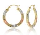 Dress your ears in a radiant symphony of hues with these 10K Tri-Colour Gold Hoop Earrings. These earrings showcase a captivating blend of yellow, white, and rose gold in a classic hoop design. The tri-colour composition adds a touch of versatility, making them a perfect accessory for various occasions. The lustrous gold enhances the timeless hoop silhouette, creating a statement piece that effortlessly complements your style.