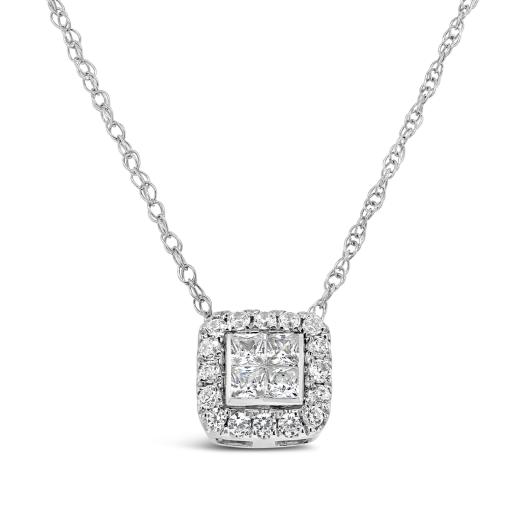 10K White Gold 0.50CTW Diamond Princessa Pendant