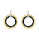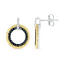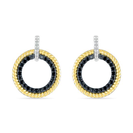 These earrings combine the contrast of sleek sterling silver and warm 10K yellow gold, with a circle design adorned with 0.23 carats of striking black diamonds. Their unique and elegant style adds a touch of drama and sophistication to your look, making them a versatile choice for those who want to make a statement and showcase their unique sense of fashion with a luxurious edge.