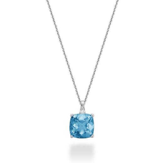 10K White Gold Blue Topaz & Diamond Pendant