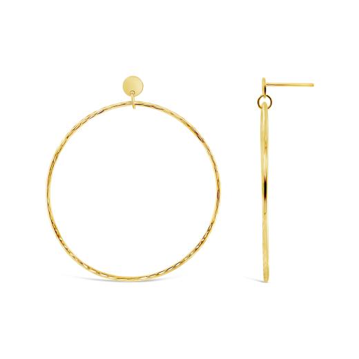 These classic hoop earrings are crafted in sleek 10k yellow gold and feature a sparkling diamond cut pattern. These earrings are a lovely choice to suit all occasions and are great for travelling.