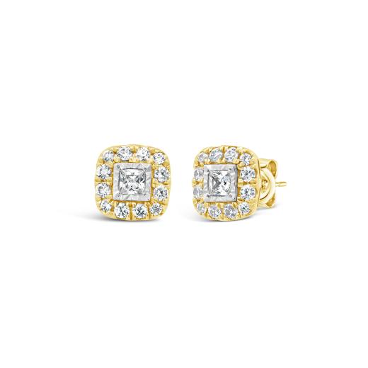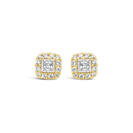 These New Brilliance Lab Grown 0.50CTW Diamond Earrings in 10K Yellow Gold feature stunning princess-cut centre stones, beautifully surrounded by a radiant diamond halo. Set in warm yellow gold, they pair perfectly with the matching pendant for a chic, coordinated look.