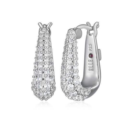 Sterling Silver ELLE "CITADEL" Rhodium Plated 3A Pave Cubic Zirconia Oblong Shape Hoop 14X18.5 mm