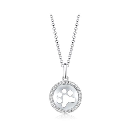 This adorable paw print necklace is crafted in sleek sterling silver and is set with shimmering cubic zirconia's. The pendant comes with a 19 inch chain. The perfect gift for yourself or the dog lover in your life!