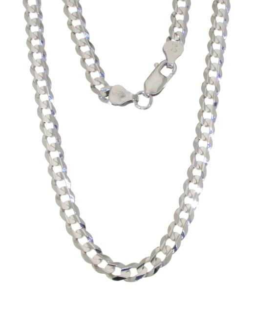 This chain features a unique concave curb link design, adding a modern twist to the classic curb chain. The substantial 5.9mm width adds a touch of boldness to the chain, making it a statement accessory for various occasions. The lustrous sterling silver construction enhances the chain's enduring beauty, offering a perfect blend of contemporary allure and classic sophistication.