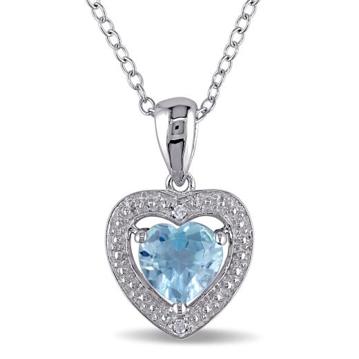 This pretty necklace features a stunning heart-cut sky blue topaz and round white diamond accents. This gorgeous pendant is set in sterling silver and includes a matching silver cable chain.
