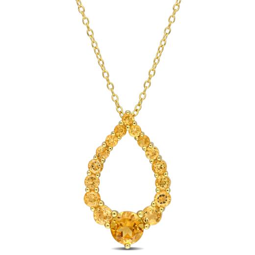Dazzle everyone with this Madeira Citrine, Honey Citrine and Citrine Open Teardrop Pendant. Crafted in lustrous 18-karat yellow gold plated sterling silver, it features a round-cut, prong-set madeira citrine gemstone (6 x 6mm) set at the centre with 15 round-cut, prong-set honey citrine and citrine gemstones studded in an open teardrop motif. Polished to a brilliant shine, this pendant with tonal gems is suspended on 18-inch round cable chain and secures with a spring ring clasp. Pair this alluring pendant with its matching teardrop earrings and look gorgeous.
