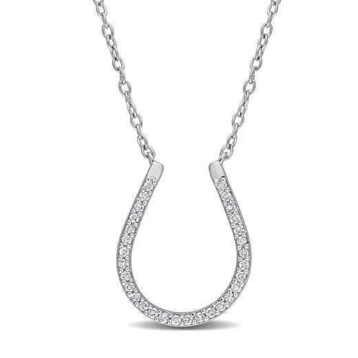 This diamond star necklace is crafted in sterling silver and features 40 round-cut, prong-set diamonds in a crescent moon motif. Enhanced with a high polish finish, this pendant is hung on a cable chain and is secured with a spring ring clasp. This simple yet beautiful diamond necklace is a great addition to any jewellery collection.
