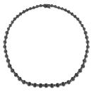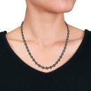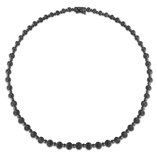 Accent your outfit in graceful style with this Black Diamond Tennis Necklace. Crafted in lustrous black rhodium plated sterling silver, this classic tennis necklace features 50 round-cut, glittering black diamonds (3 x 3mm) that are mounted on the necklace in a pave setting. Enhanced with a high polish finish, this necklace measures 17-inches and is secured using a spring ring clasp. This layerable tennis necklace makes a superb gift option and is a perfect addition to any jewellery collection.