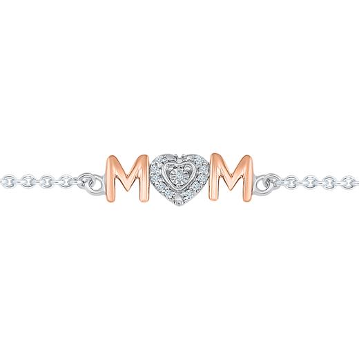 Sterling Silver & Rose Gold Diamond Mom Bracelet