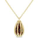 This charming garnet cage drop necklace is crafted in yellow plated sterling silver and features six round, bead-cut, bezel-set garnet gemstones in a uniqe shaped cage design. This modern pendant is the perfect addition to any jewellery collection. Coordinate this gorgeous birthstone necklace with any ensemble and instantly add a touch of elegance and sophistication to your look.
