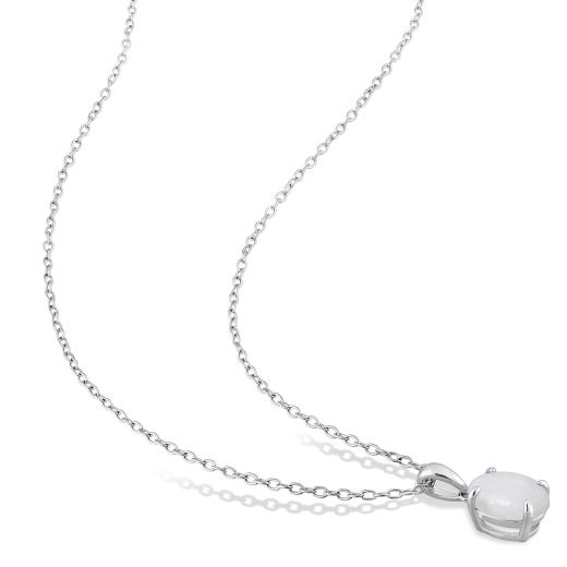 Get the perfect neckpiece for your black dress with this Opal Solitaire Pendant with Chain. Crafted in luminous sterling silver, this classy pendant features an oval-cut, 4 prong-set opal gemstone (9x7mm) in a classic basket setting. Polished to a brilliant shine, this elegant pendant is suspended on an 18-inch round cable chain secured with a spring ring clasp. This enchanting pendant is sure to grab everyone's attention.