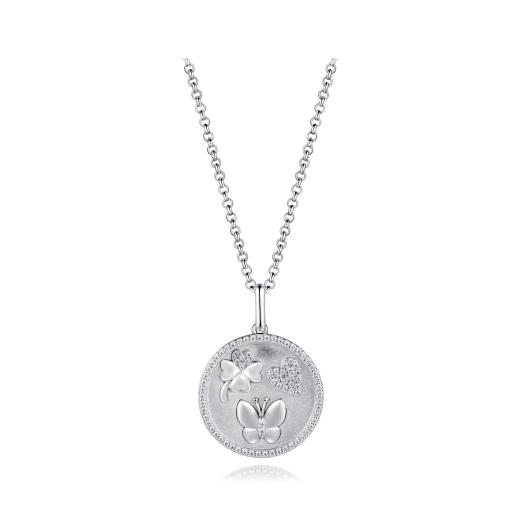 This Luck, Love, Happy cubic zirconia pendant is crafted in lustrous sterling silver and hangs on a beautiful 19 inch chain. This necklace is sure to make a standout addition to any jewellery collection. Choose this shimmering piece for yourself or as a special gift for someone you love.