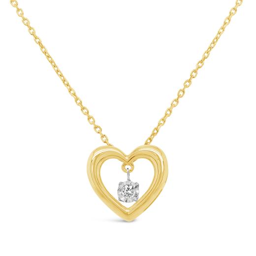 Introducing the Dancing Diamonds 10K Yellow Gold Diamond Heart Necklace—a graceful expression of elegance and affection. This necklace features a charming heart pendant adorned with a sparkling diamond, all set in warm 10K yellow gold. Its enchanting design adds a subtle yet captivating touch to any look, making it perfect for both everyday wear and special occasions.