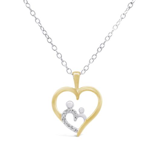 Celebrate love and connection with this sterling silver, yellow gold-plated diamond heart pendant, beautifully crafted to symbolize the timeless bond between mother and child with a touch of sparkling elegance.