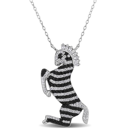 Make a bold statement with this striking zebra necklace featuring black spinel, cubic zirconia, and white topaz. Crafted in sterling silver, this necklace measures 18 inches with a 2-inch extender, allowing for adjustable wear. Its unique design and contrasting gemstones make it a perfect accessory for adding a touch of drama and sophistication to your ensemble.