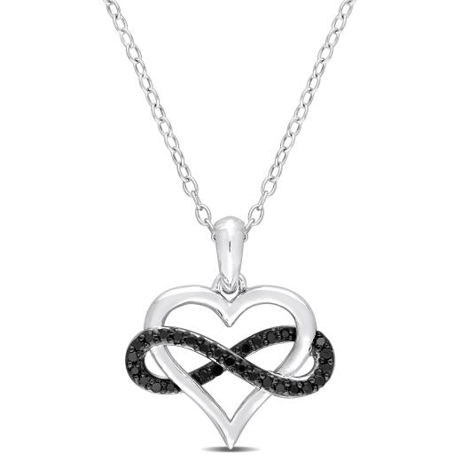 Make a bold statement with this striking 1/6 CT black diamond total weight fashion pendant, expertly crafted in silver and enhanced with black rhodium plating. The sleek design showcases the captivating allure of the black diamonds, creating a modern and edgy look. Suspended from a matching chain, this pendant is perfect for adding a touch of sophistication to any outfit, whether for everyday wear or special occasions. An essential piece for those who appreciate contemporary style with a hint of drama.