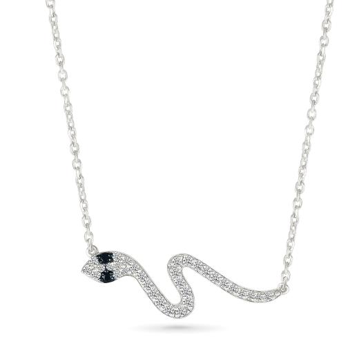 Make a bold statement with this 0.18CTW black & white diamond snake necklace in sterling silver. The serpentine design is beautifully accentuated by black diamond eyes, adding an element of mystery and elegance. This piece combines sophistication with a hint of edge, making it a standout addition to any jewelry collection.