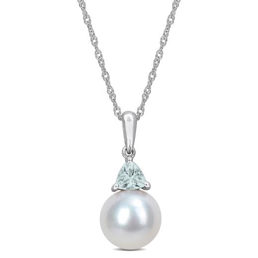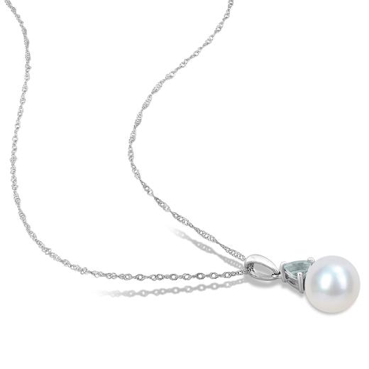 Julianna B 10K White Gold Aquamarine & 8-8.5MM Pearl Earrings