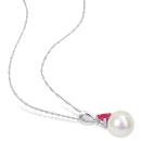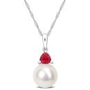 Julianna B 10K White Gold Created Ruby & 8-8.5MM Pearl Earrings