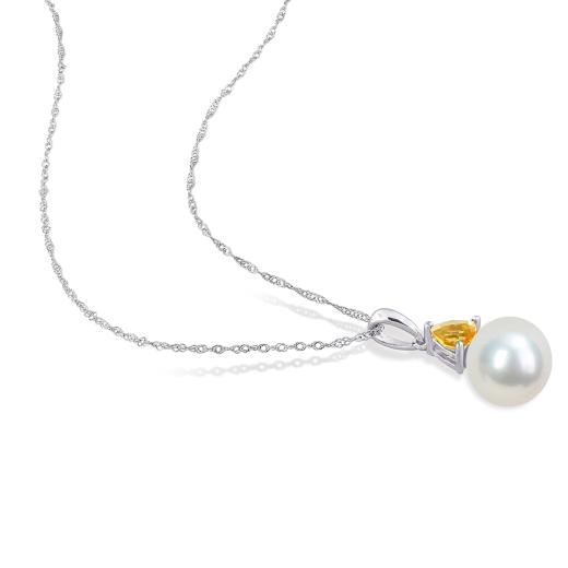Julianna B 10K White Gold Citrine & 8-8.5MM Pearl Earrings