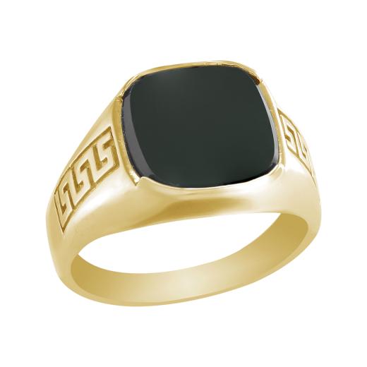 Look extraordinary in this black onyx and yellow gold men's ring. Enhanced with a high polish finish, this gemstone men's band makes a fashionable addition to any jewellery collection.