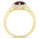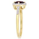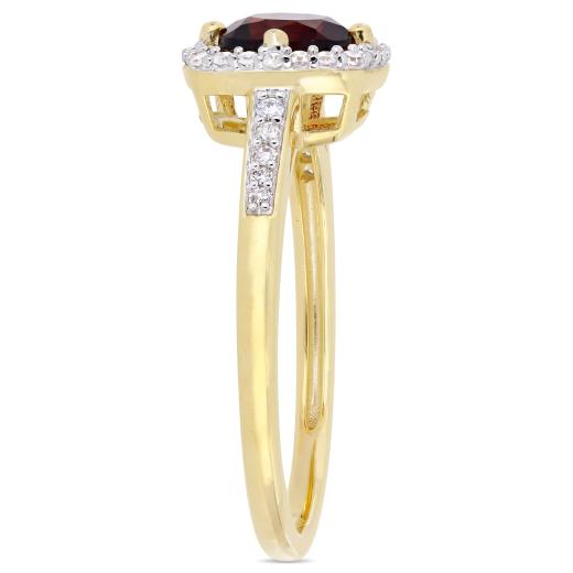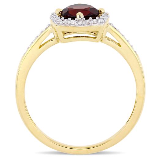 This modern floating square halo gemstone ring is crafted in yellow gold and features a solitaire garnet stone in a unique floating 30 diamond halo design. Add a touch of elegance and color to any ensemble with this stunning ring. Whether worn as an engagement ring or simply a lovely new gemstone piece, this ring is a perfect addition to any jewelry collection.