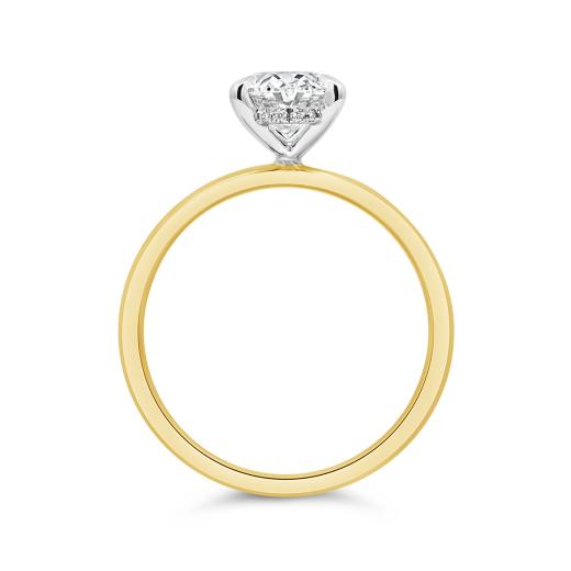 Embrace the allure of lab-grown diamonds, where innovation meets responsibility. At the heart of this dazzling ring lies a breathtaking 1.57CTW lab-grown diamond, skillfully cut in a mesmerizing oval shape. Each facet reflects brilliance and sparkle, capturing the essence of timeless beauty.