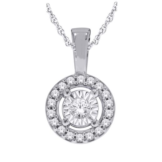 Sterling Silver 0.10CTW Diamond Halo Pendant