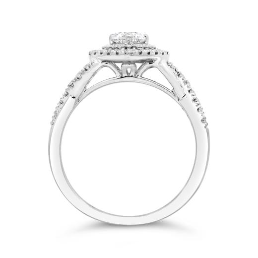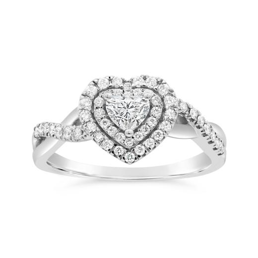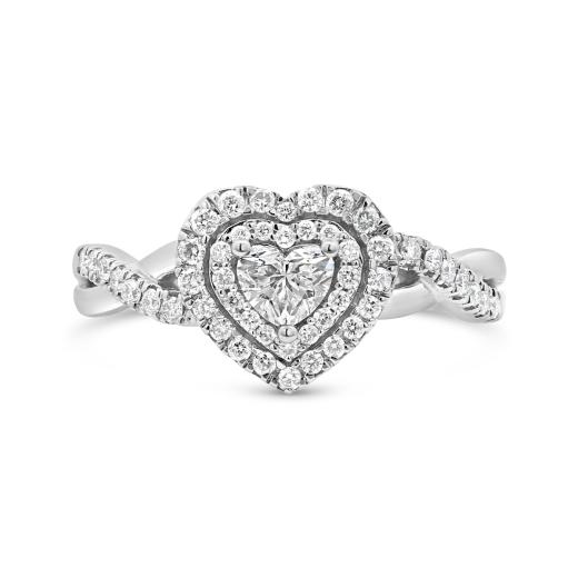 Celebrate your love story with the enchanting 14K White Gold 0.58CTW Heart Shaped Diamond Bridal Ring. At its heart, a captivating heart-shaped diamond takes center stage, symbolizing your deep and enduring love. The brilliance of the heart diamond is accentuated by a double halo of sparkling diamonds, creating a breathtaking display of elegance and romance. This bridal ring is a timeless and symbolic expression of your commitment, making it the perfect choice to begin your journey together. Let this stunning piece be a reflection of the unique and cherished bond you share.