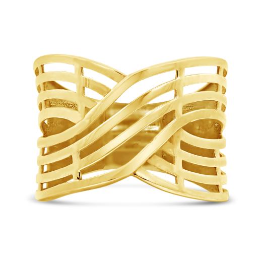 Make a bold yet graceful statement with this 10 karat yellow gold criss-cross ring—where sleek lines and golden brilliance intertwine in perfect harmony.