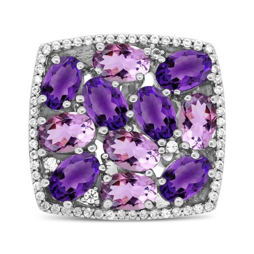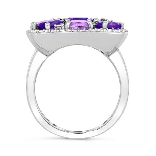 A symphony in silver, this mosaic-style ring is pure artistry for your hand. Rich violet amethysts dance alongside shimmering white zircons, arranged in an abstract mosaic that captures both precision and spontaneity.