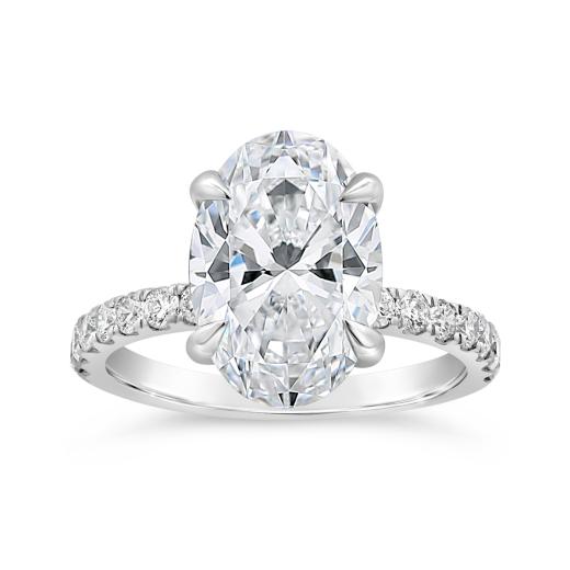Celebrate your love with this exquisite bridal ring featuring a 4-carat oval lab-grown diamond as the centerpiece, complemented by sparkling accent stones along a sleek 14K white gold band. With a total weight of 4.50 carats, this ring offers exceptional brilliance and modern luxury.